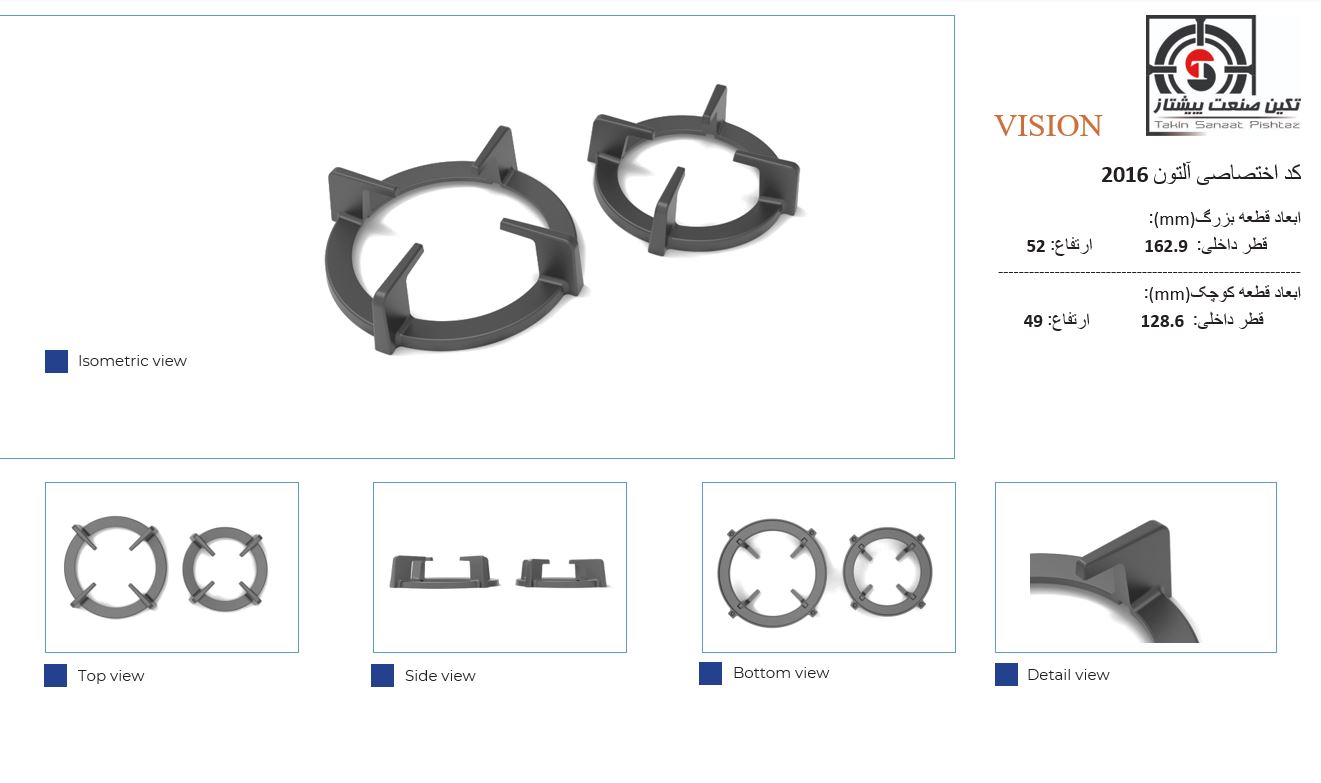 قطر داخلی:  162.9            ارتفاع: 52